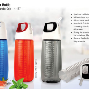 H167 – Fruit infuser bottle with silicon handle grip (700ml approx) | BPA free