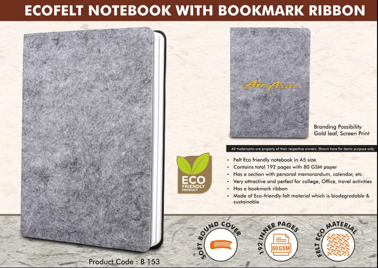 B153 – EcoFelt Notebook with bookmark ribbonB153 – EcoFelt Notebook with bookmark ribbon