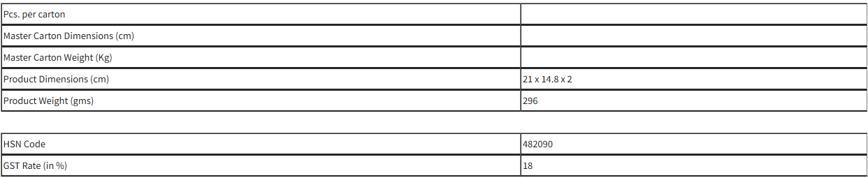– 192 writing sheets made from 80 gsm pages