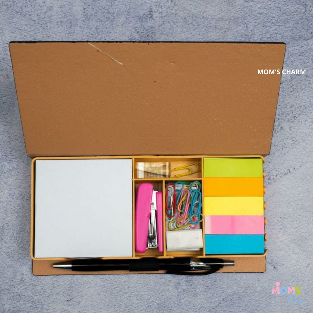 Mom’s Charm? personalized stationery box is a uber cool set containing all essentials. This desk organizer set contain all the necessary stationery essentials and makes a stylish and practical gift that can be used for your office or home study table. Comes with a memo pad, stapler, paper clips, pen , stick ons etc as shown.