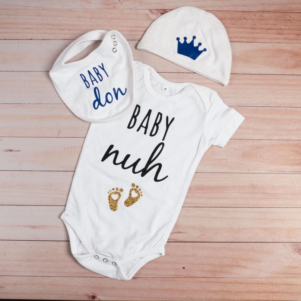Customized New Born Baby Romper + Cap + Bib Combo - WhiteCustomized New Born Baby Romper + Cap + Bib Combo – White