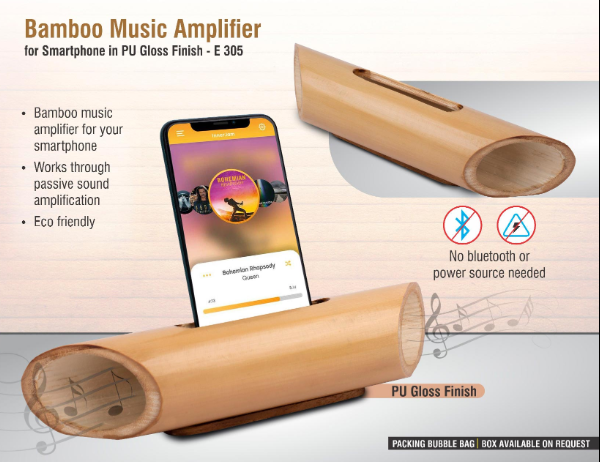 E305 – Bamboo Music Amplifier for Smartphones in PU gloss finish | Universal Design - MOQ 500PcsE305 – Bamboo Music Amplifier for Smartphones in PU gloss finish | Universal Design – MOQ 500Pcs