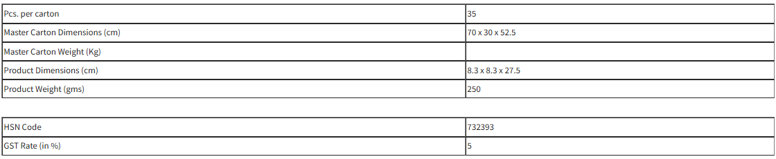 – Capacity: 750ml approx