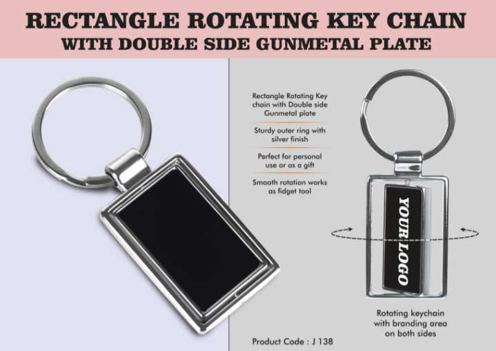– Rectangle Rotating Key chain with Double side Gunmetal plate