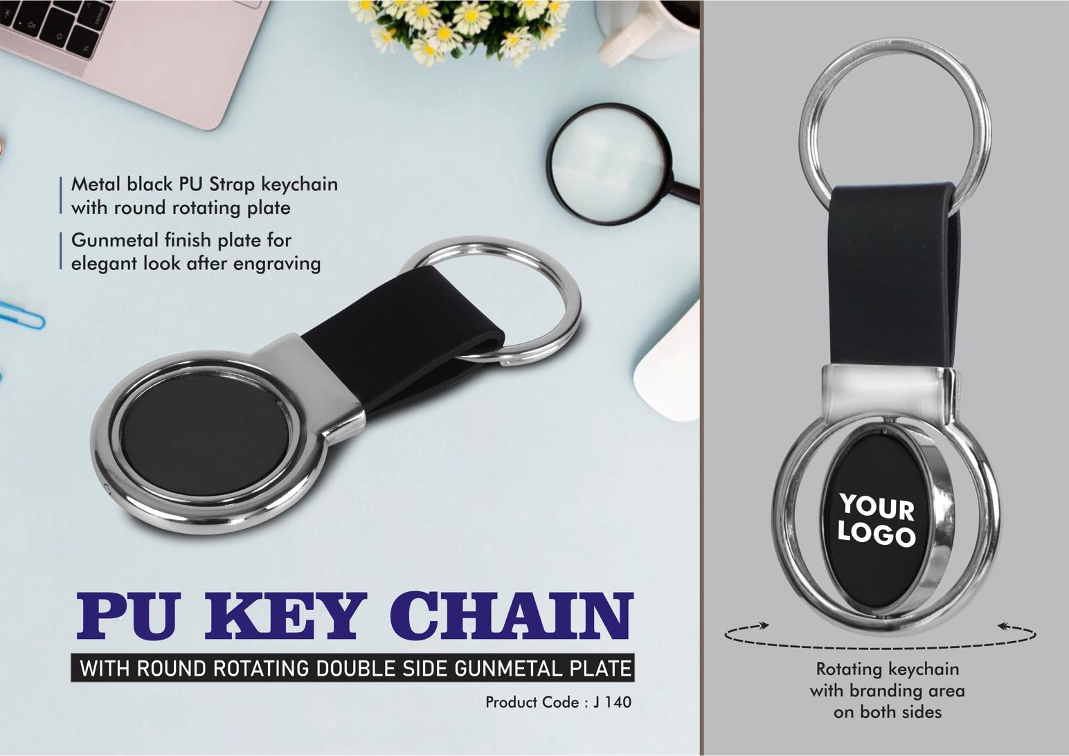 – PU Strap keychain with round rotating plate