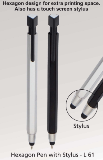Hexagon design for extra printing space. Also has a touch screen stylus