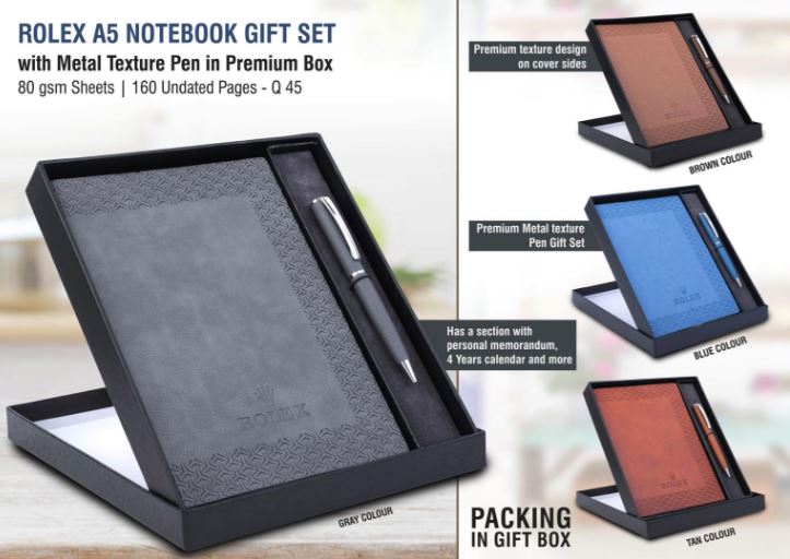 Q45 – Rolex Notebook with Metal Texture pen Gift set in Premium box
