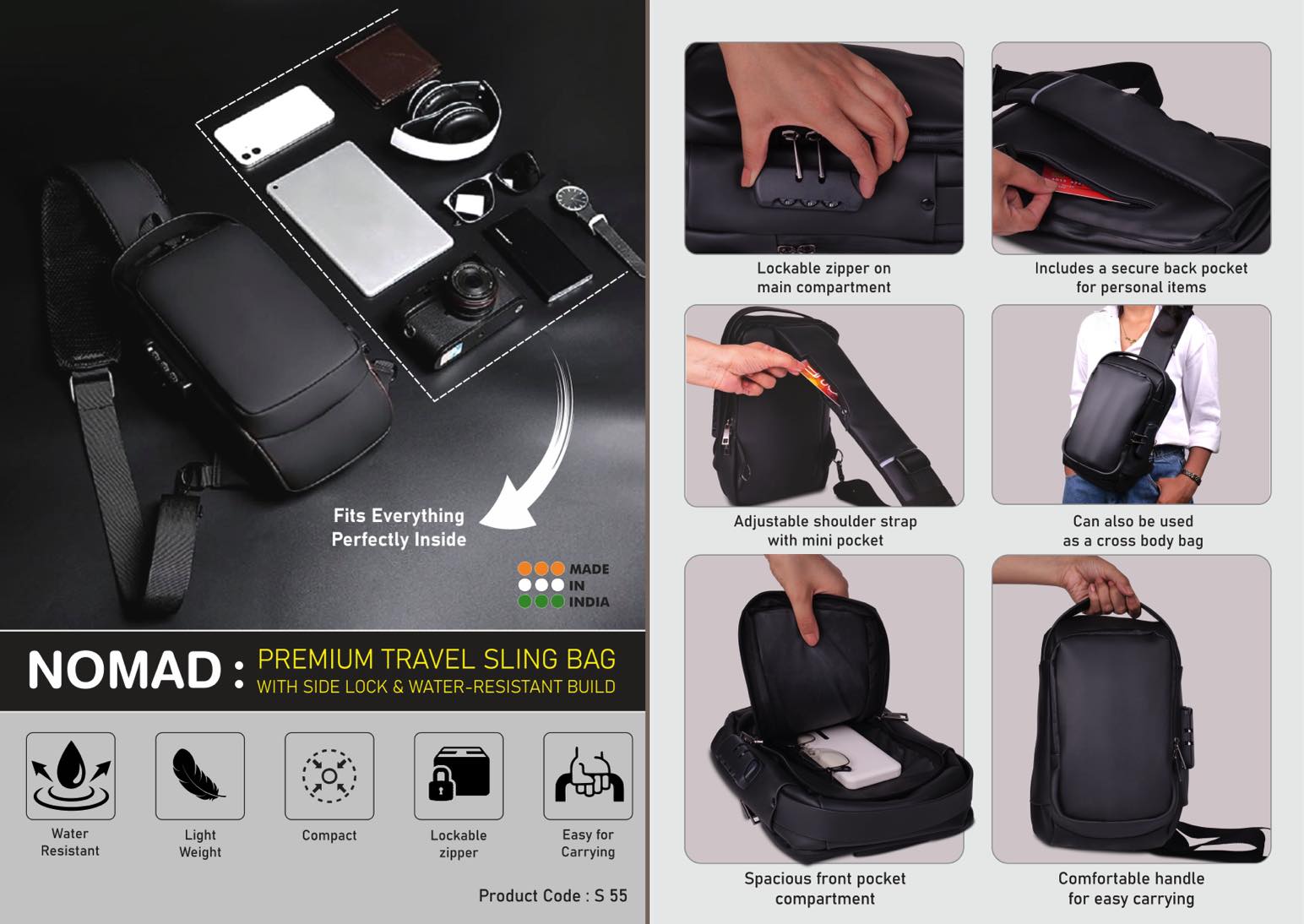 – Nomad Premium travel sling bag with Side lock